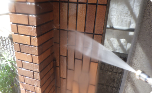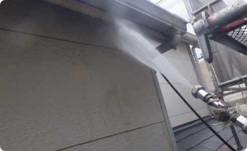 水を使って、外壁に付着した汚れや古い塗膜、苔やカビを高圧洗浄でしっかりと落とします。