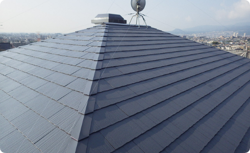 その後、中塗り、上塗りを行います。これにより、耐久性と美観が向上します。新しい色や仕上げによって外観が一新!雨漏りリスクの軽減や屋根材の寿命を延ばします。