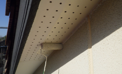 屋根の裏側部分、外壁から突き出ている屋根の下側の「軒天井」。美観を保ち、耐久性や雨水の侵入を防ぐ等の機能性向上のためしっかりメンテナンスを行います。風雨ににさらされやすく、劣化しやすい箇所です。