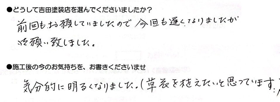 - 施工後の今のお気持ちを、お書きくださいませ!